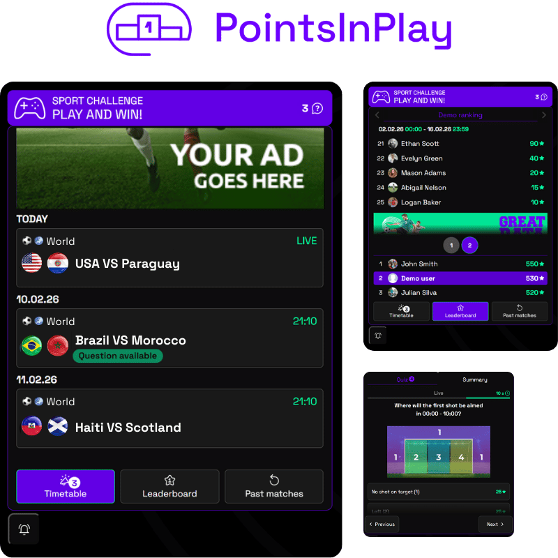 CupCenter’26 is a fully customizable fan engagement zone with live data, integrated into your media platform in as little as 2 days.